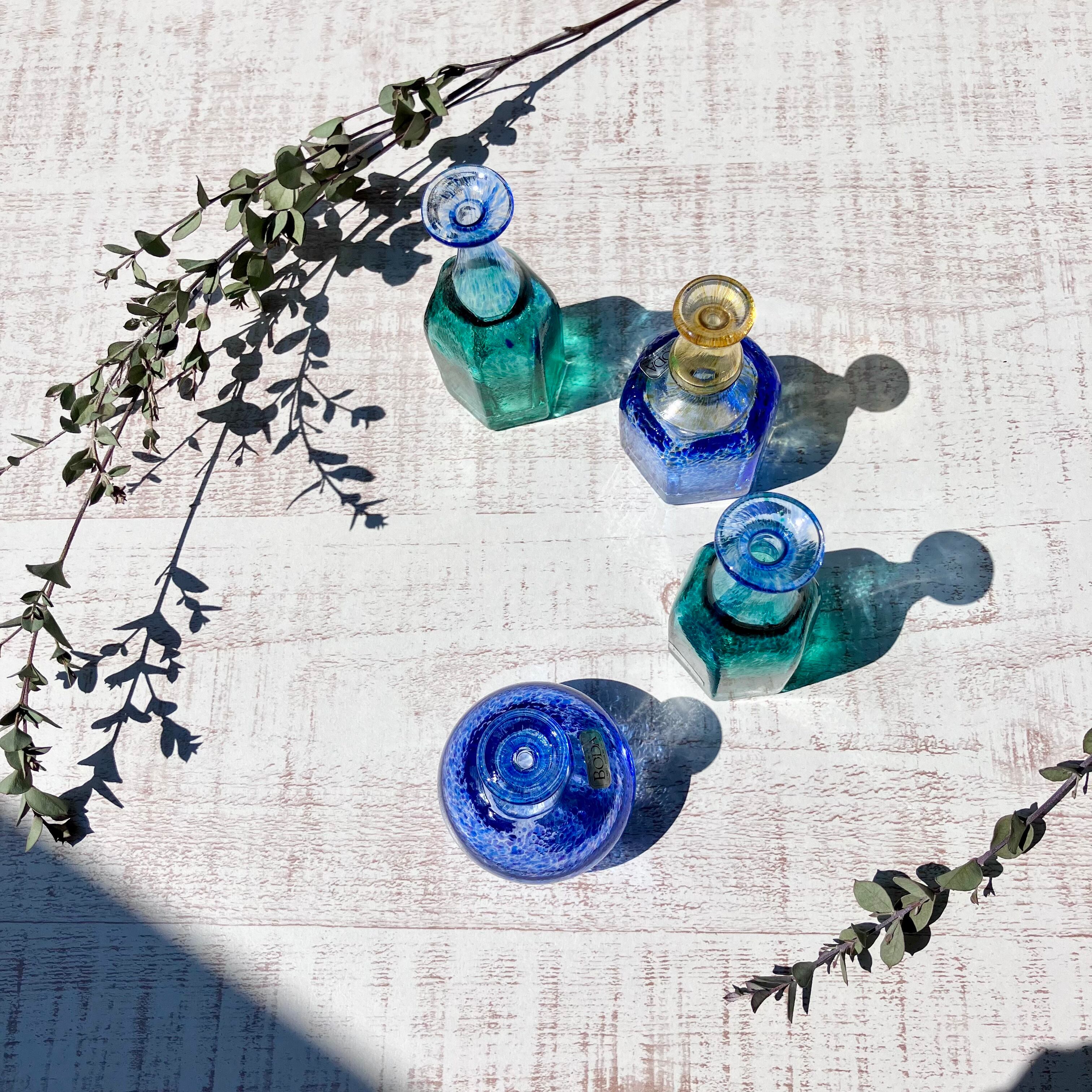 イエロー×ブルーのガラスの小瓶/バーティルヴァリーン/小瓶/ヴィンテージガラス