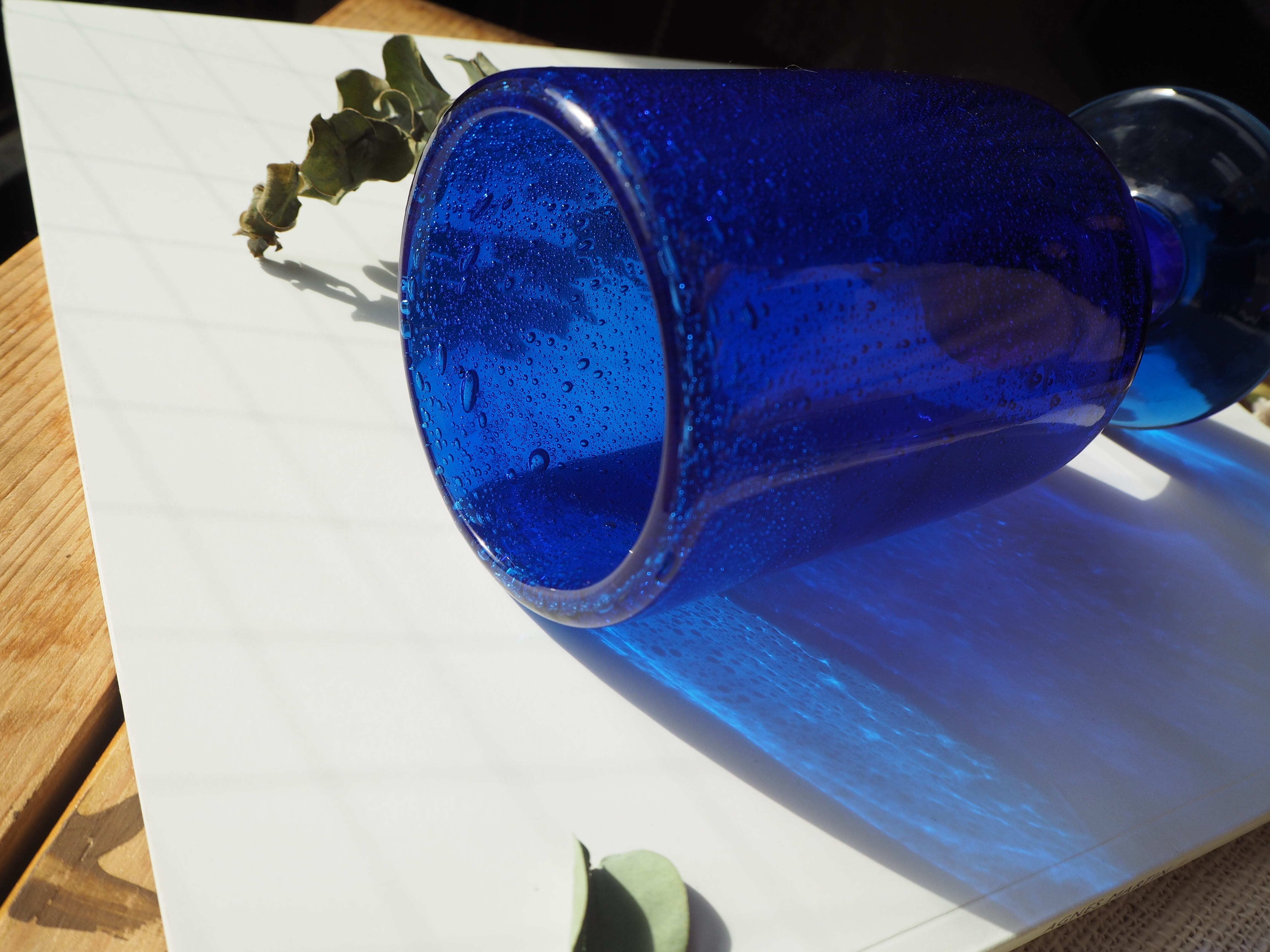 青いゴブレット/フラワーベース/ブルー/花瓶/エリックホグラン/ガラス