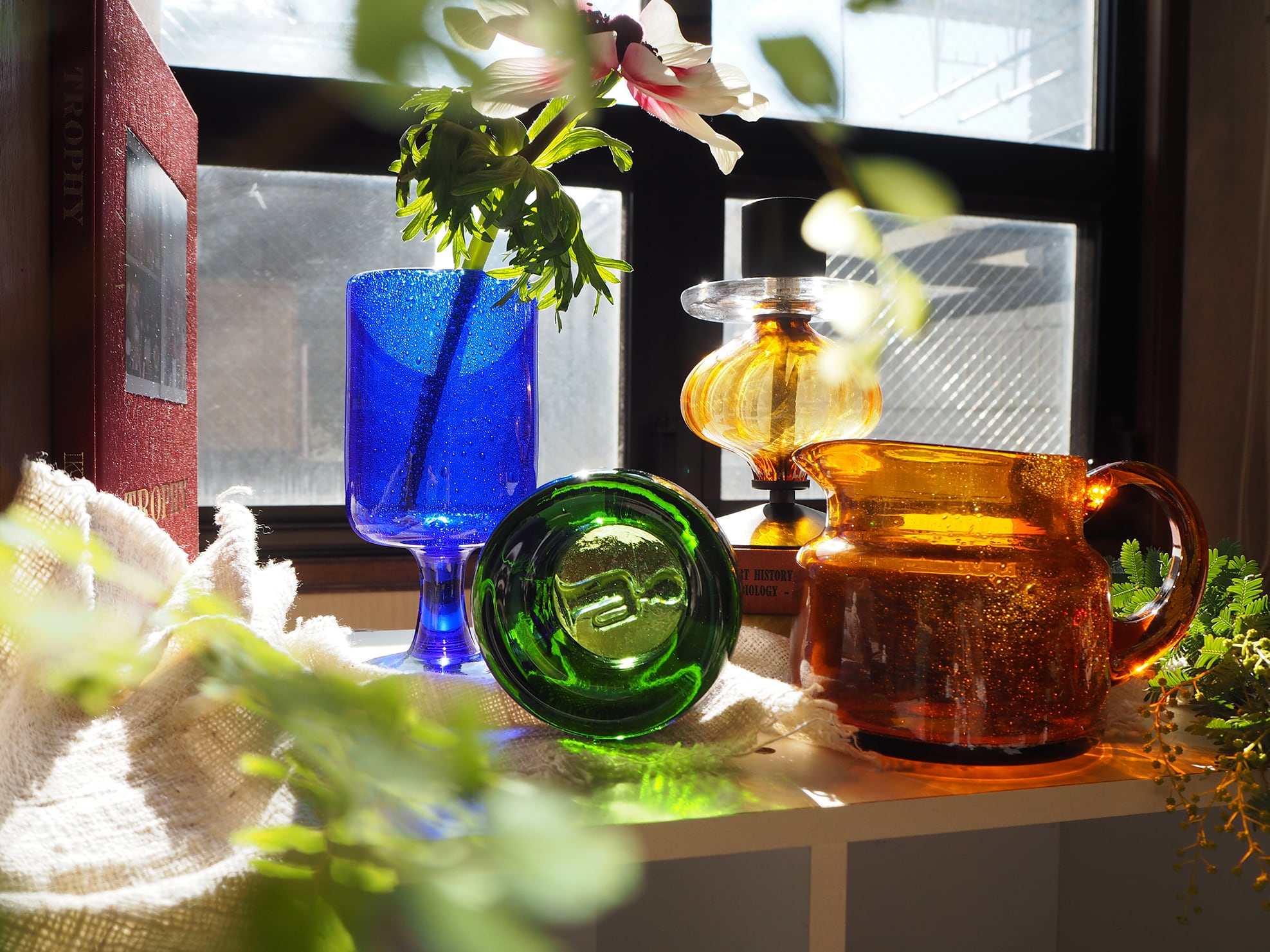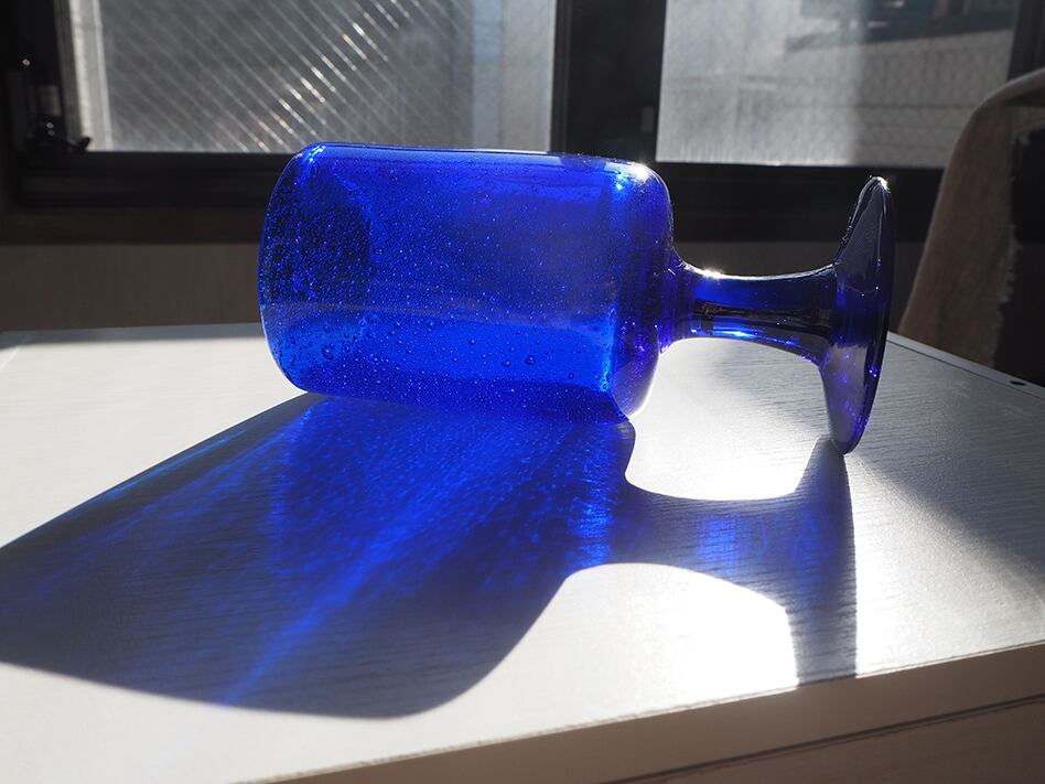 気泡を豊富に含んだボディは、日差しにかざすと無数の気泡がキラキラ輝きます。海や宇宙を連想させる美しさです。気泡を含んだ青く美しく表情豊かな影も見せてくれます。花器としてはもちろん、飾っておくだけでも抜群の存在感があります。ぜひ奥深い青と気泡に魅了されてください。