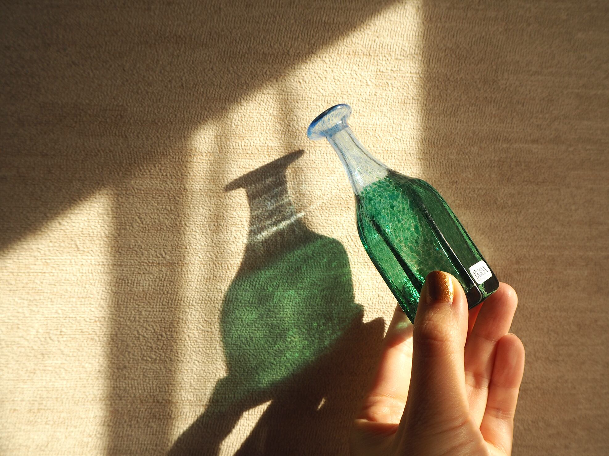 スウェーデンのKosta BodaにてBertil Vallien(バーティル・ヴァリーン)がデザインした小さなガラスベースです。小さな可愛らしいフォルムの中に、色彩鮮やかな模様がとても繊細で印象的な作品。日差しに当たったグラデーションの影がとても美しいです。細くて繊細な口にも、細かな模様が施されています。小さなサイズ感が可愛らしい一輪挿しですが、ガラス作品として飾っておくだけでもお楽しみいただる抜群の魅力があります。
