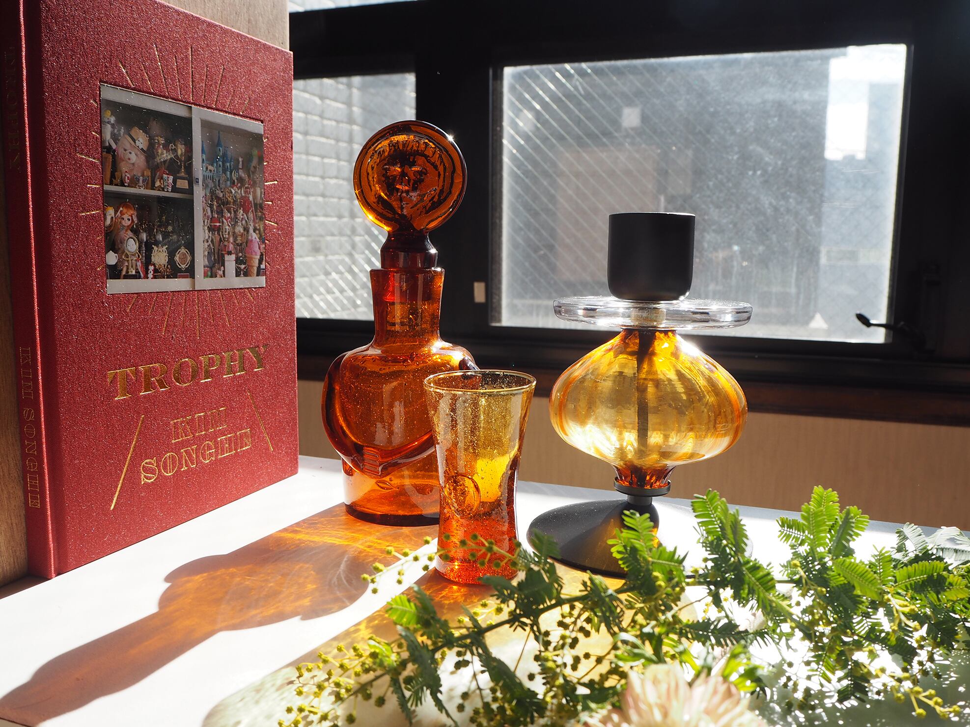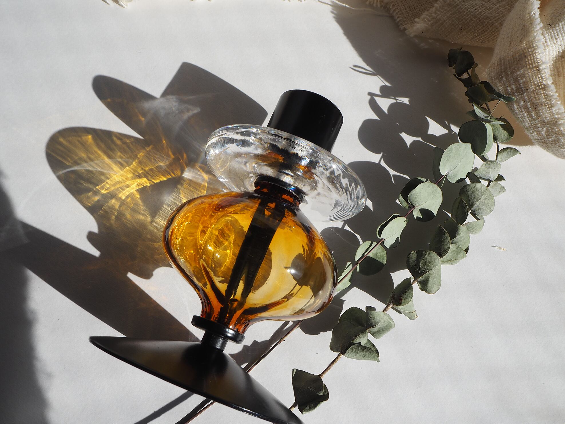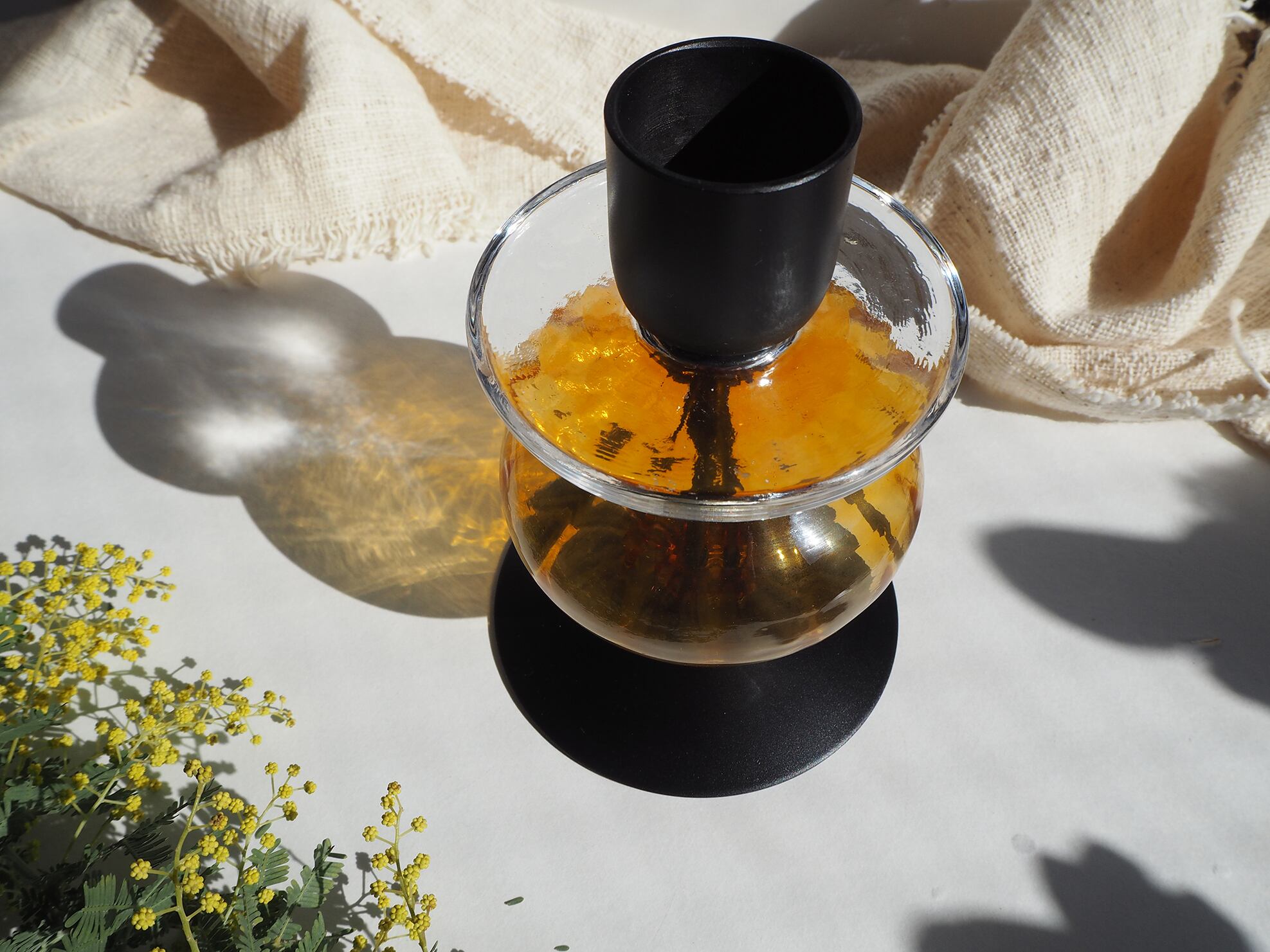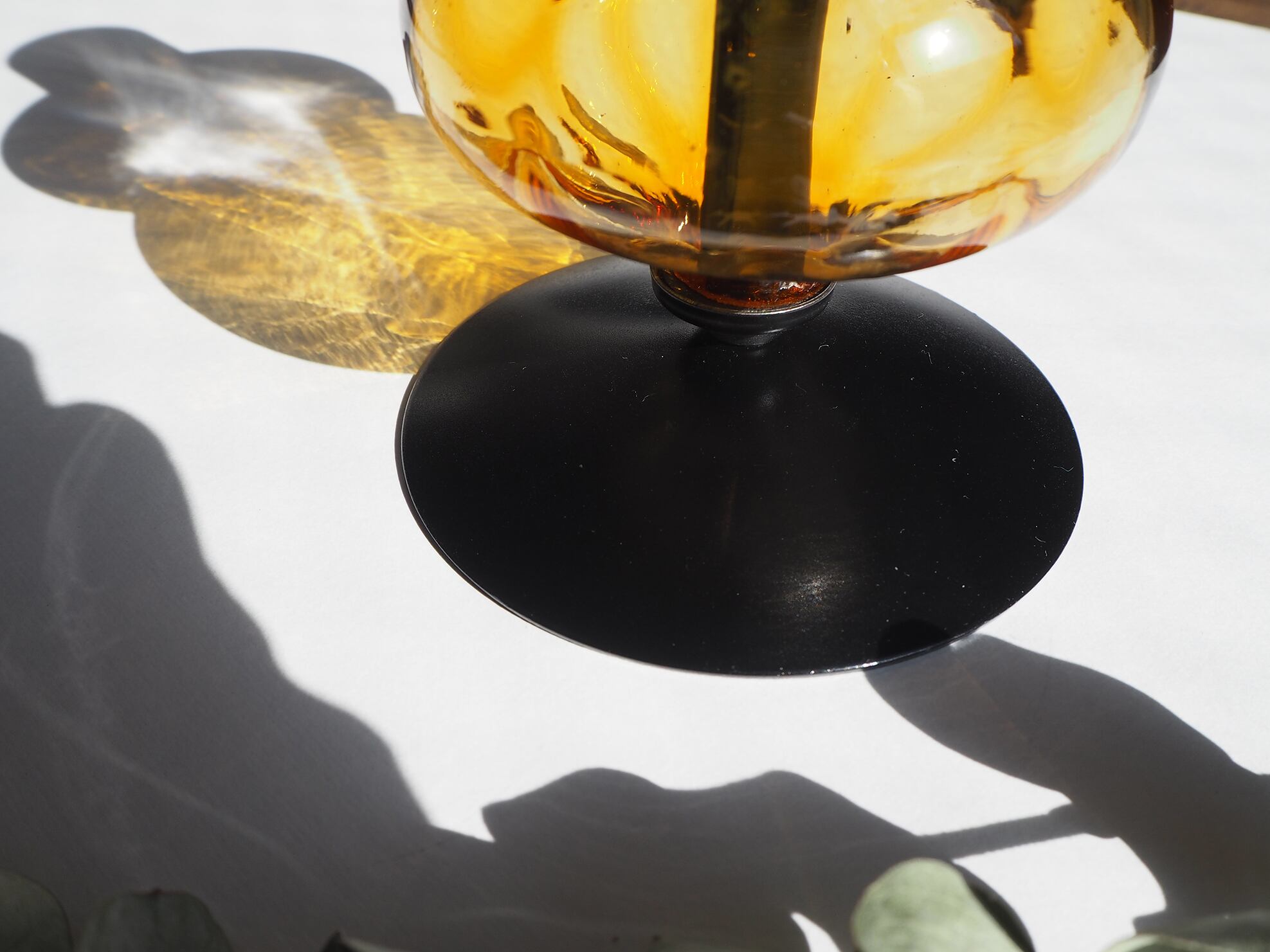 琥珀色のキャンドルホルダー/ガラス/アイアン/アンバー/エリックホグラン/蝋燭立て