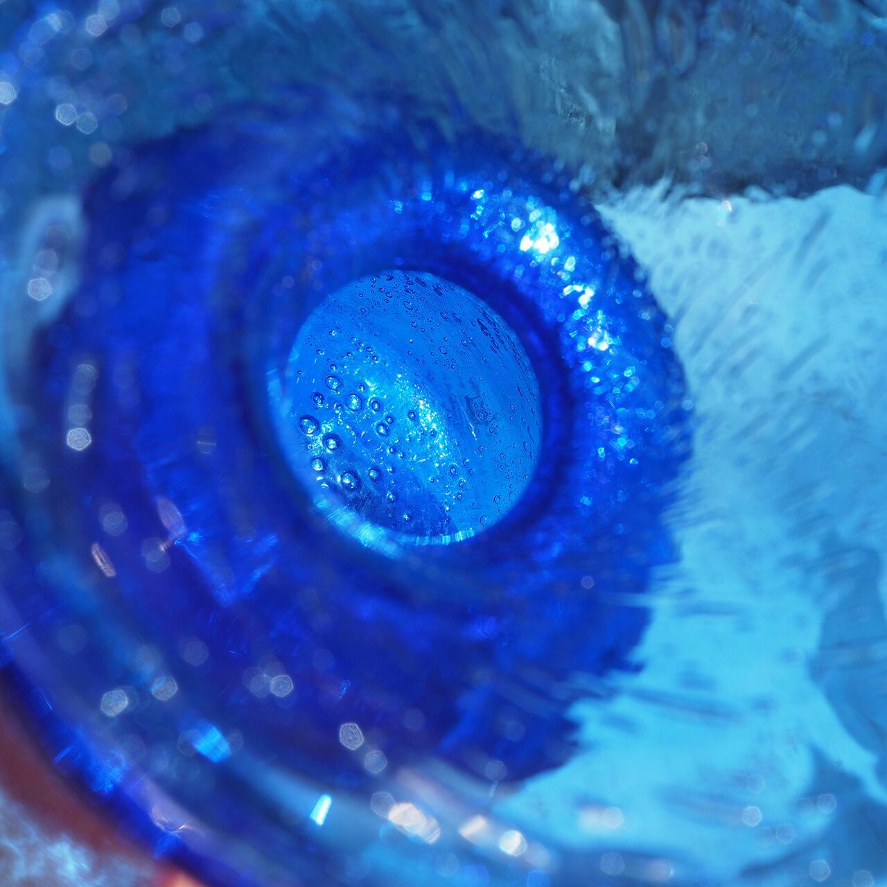 瑞々しい深い青色が印象的!日差しの入る場所に飾ると美しい影を見せてくれます。大小様々な気泡を全体に含み、特に口の周辺は渦を巻くような躍動感のある気泡が見られます。きゅっと細くなった首のデザインが素敵な人気のデザイン。シェイプの柔らかな歪みはもちろん、気泡の量や動きも、そのガラスだけの個性です。花器としてはもちろん、飾っておくだけでも抜群の存在感があります。