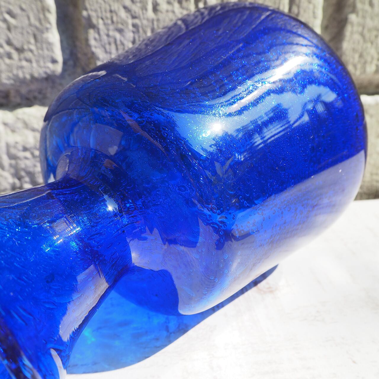 たっぷり入った気泡が美しいエリックホグランのブルーのフラワーベースです。