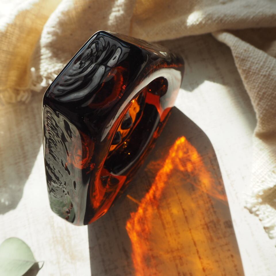 琥珀の三角アッシュトレイ/ウーマン/琥珀色/エリックホグラン/ERIK HOGLUND/ペーパーウェイト/ガラス